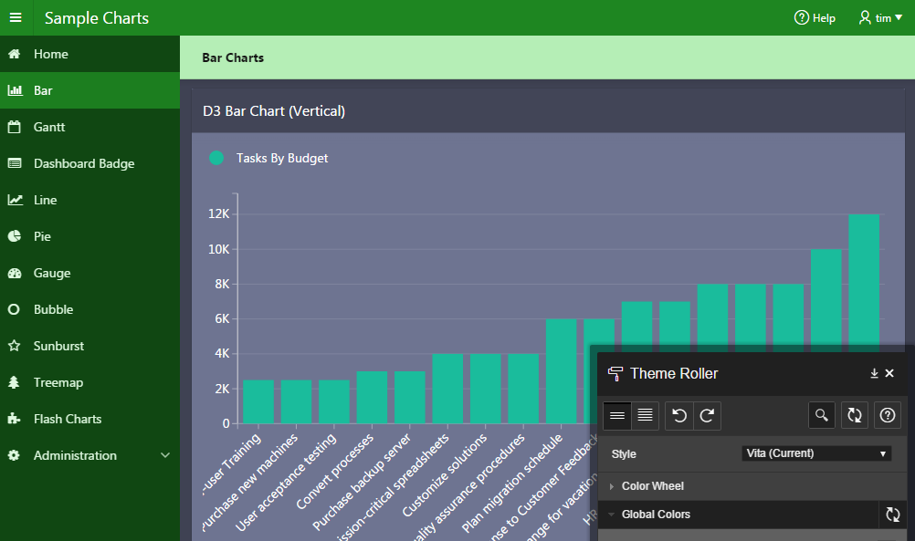 Older themes required you to to stick with one color and one set of styling. The only means of having your own styling was to override the defaults with CSS or switch to a new theme entirely. Universal Theme addresses this pain point by allowing you to quickly generate a new style for your app, using a GUI.