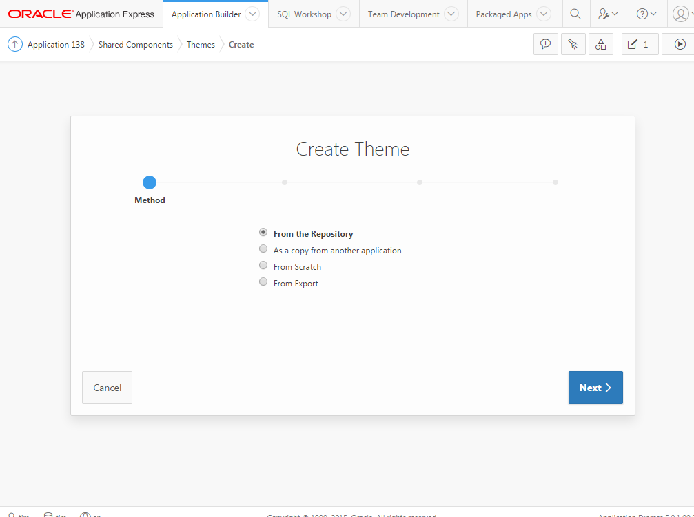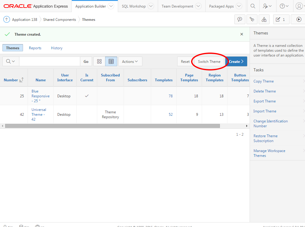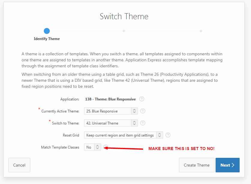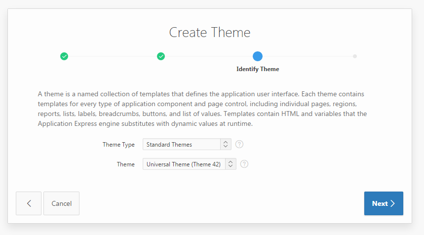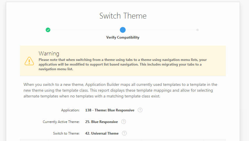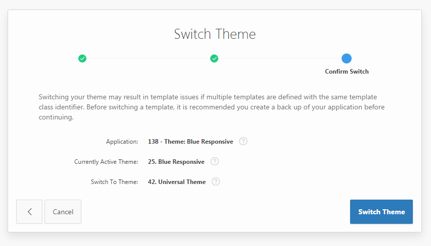 Additionally, if you re-import the original application, under a different Application ID, you can refer to this application to review how the application looked previously, as opposed to how it looks using the Universal Theme.