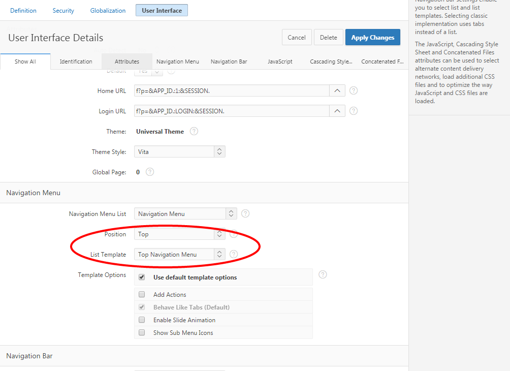 Once you have brought your application up to a "functional" state, you should consider a few more simple improvements you can readily make to your application, so that you can take full advantage of the new features in both Application Express 5 and Universal Theme. For example, you may want to prototype some different layout options, with a select group of users, to see if existing pages can be readily improved by simply changing some Template Options.